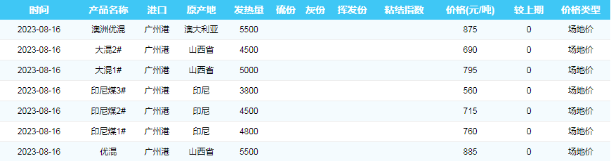 2023年8月16日广州港煤炭价格