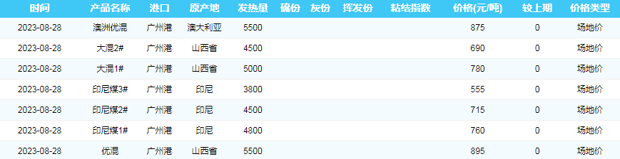 2023年8月28日广州港煤炭价格