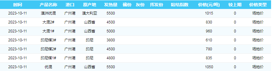 2023年10月11日广州港煤炭价格