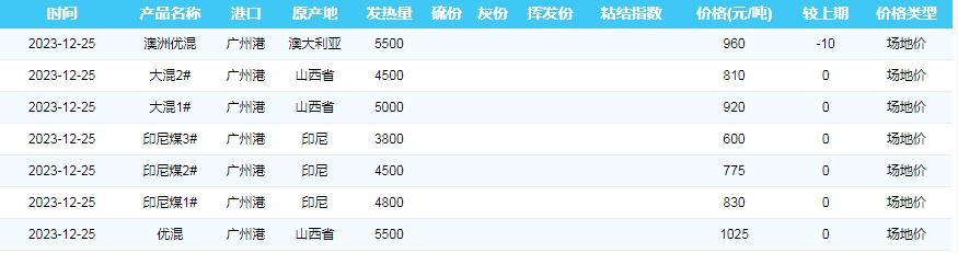 2023年12月25日广州港煤炭价格