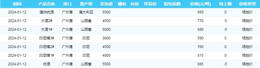 2024年1月12日广州港煤炭价格