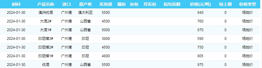 2024年1月30日广州港煤炭价格