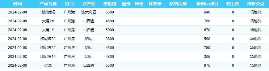 2024年2月8日广州港煤炭价格