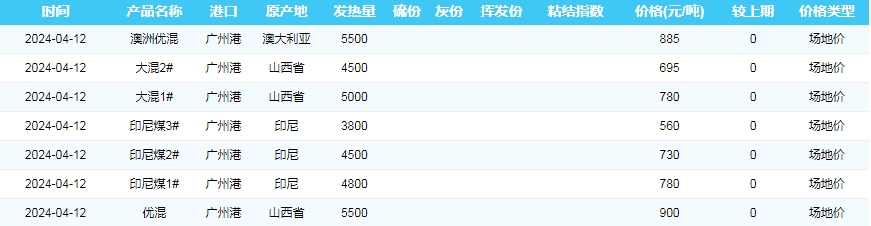 2024年4月12日广州港煤炭价格