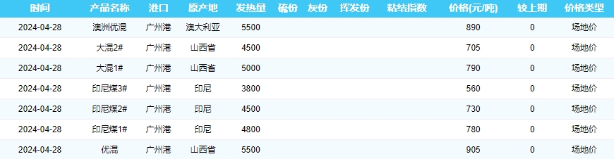 2024年4月28日广州港煤炭价格