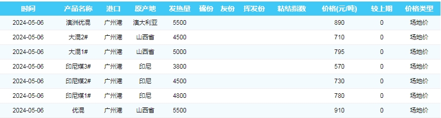 2024年5月6日广州港煤炭价格