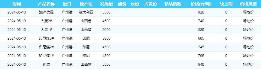 2024年5月13日广州港煤炭价格
