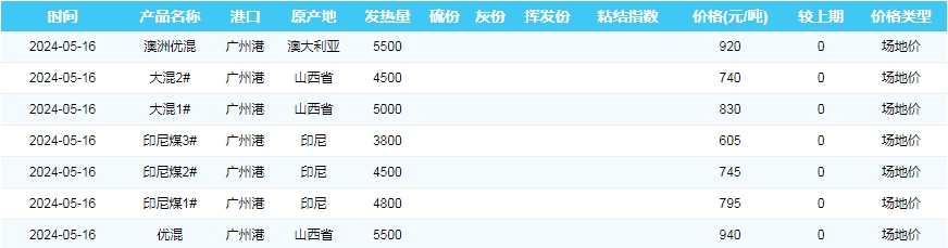 2024年5月16日广州港煤炭价格