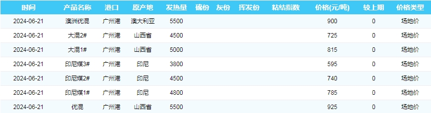 2024年6月21日广州港煤炭价格