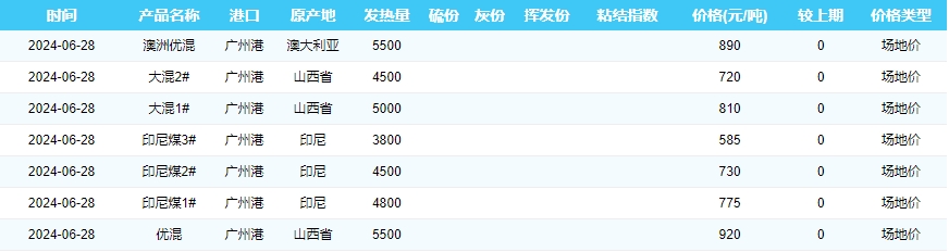 2024年6月28日广州港煤炭价格