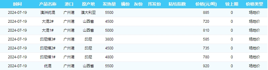 2024年7月19日广州港煤炭价格
