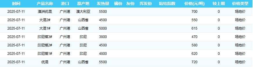 2025年7月11日广州港煤炭价格