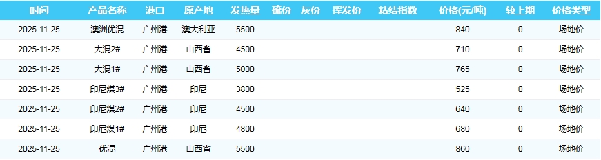 2025年11月25日广州港煤炭价格