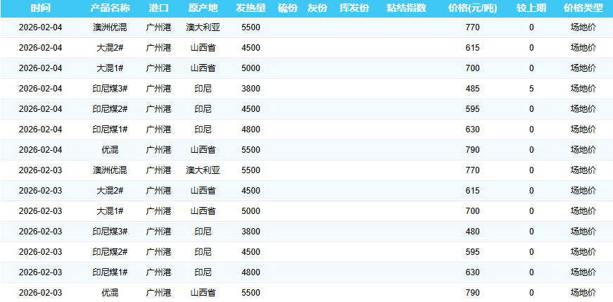 2026年2月3-4日广州港煤炭价格