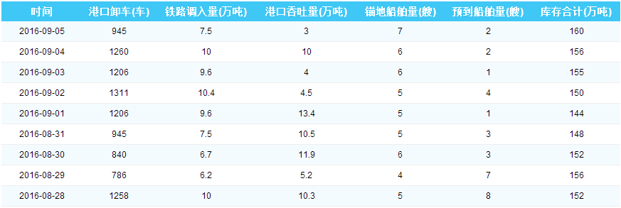 2016年09月05日曹妃甸港库存