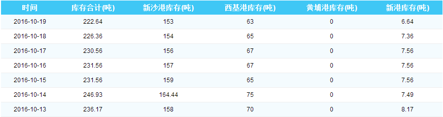 2016年10月19日广州港库存