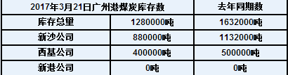 2017年3月21日广州港库存
