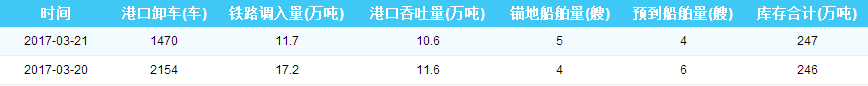 2017年3月21日秦皇岛港库存