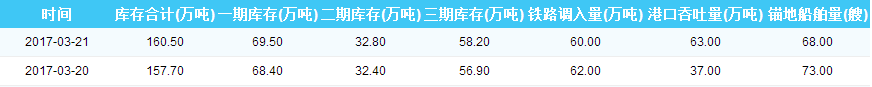 2017年3月21日天津港库存