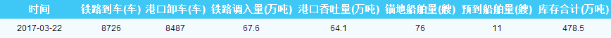 2017年3月22日秦皇岛港库存