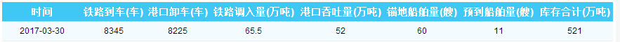 2017年3月30日秦皇岛港港口库存