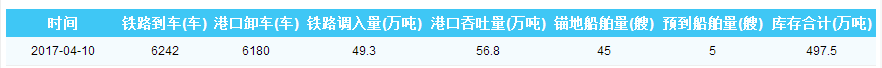 2017年4月10日秦皇岛港港口库存