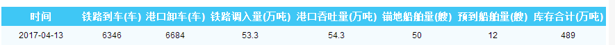 2017年4月13日秦皇岛港港口库存