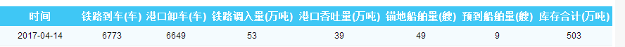 2017年4月14日曹妃甸港港口库存