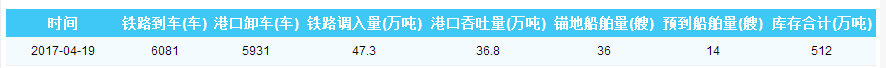 2017年4月19日秦皇岛港港口库存