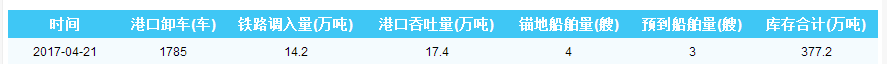 2017年4月21日秦皇岛港港口库存