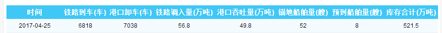 2017年4月25日秦皇岛港港口库存