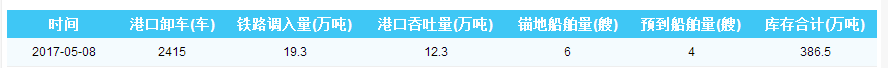 2017年5月8日曹妃甸港港口库存