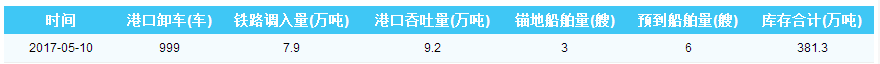 2017年5月10日曹妃甸港港口库存