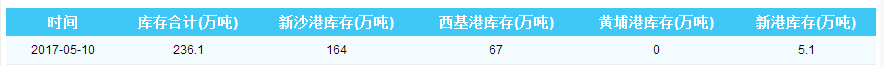 2017年5月10日广州港港口库存