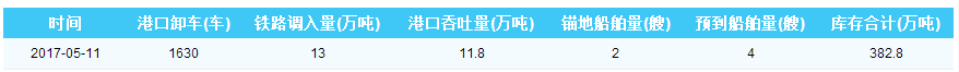 2017年5月11日曹妃甸港港口库存