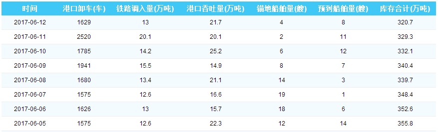 2017年6月12日秦皇岛港港口库存