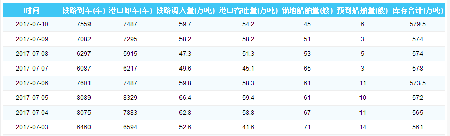 2017年7月10日秦皇岛港港口库存