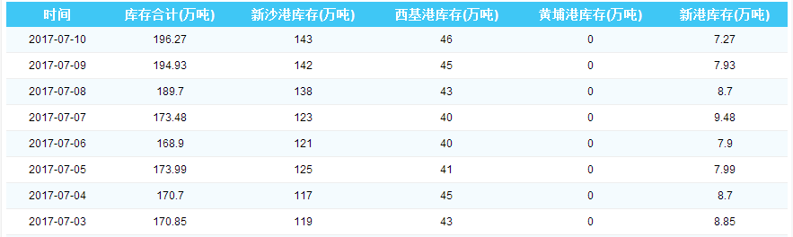 2017年7月10日广州港港口库存