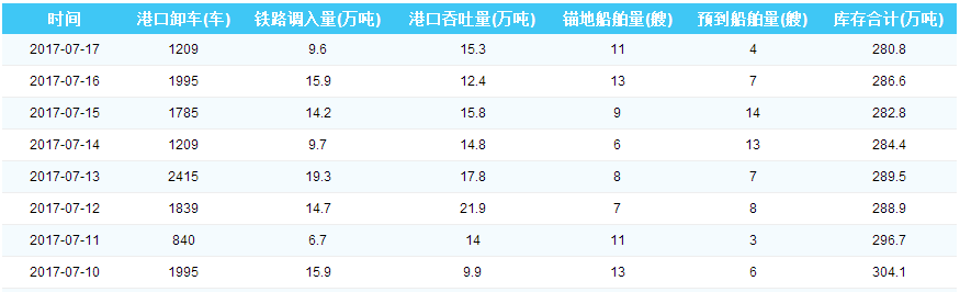 2017年7月17日秦皇岛港港口库存