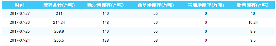 2017年7月27日广州港港口库存