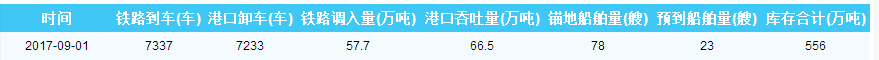 2017年9月1日秦皇岛港港口库存