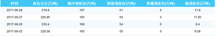 2017年9月29日广州港港口库存