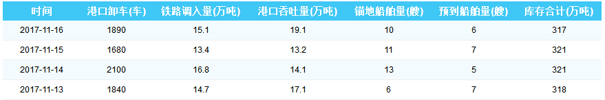 2017年11月16日曹妃甸港港口库存