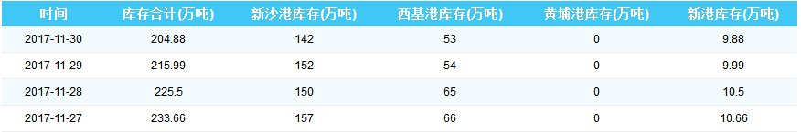 2017年11月30日广州港港口库存