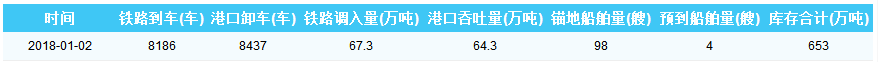 2018年1月2日秦皇岛港港口库存