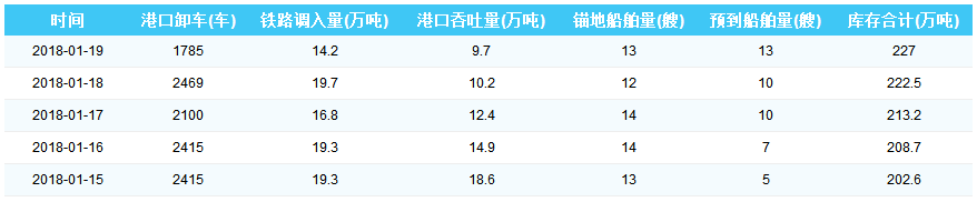2019年1月19日秦皇岛港港口库存