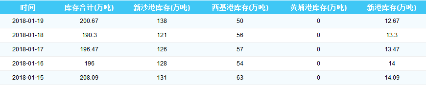 2018年1月19日广州港港口库存