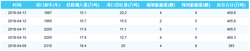 2018年4月13日曹妃甸港港口库存