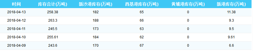 2018年4月13日广州港港口库存