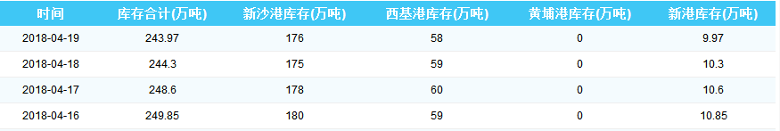 2018年4月19日广州港港口库存